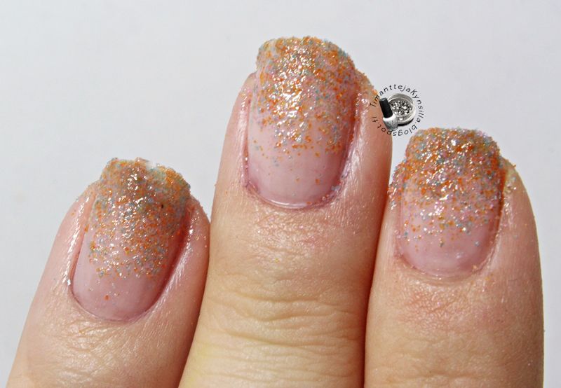 Testasin tätä glitteriä vaan pikaisesti kynsille, sillä halusin tietää miltä tää näyttää.