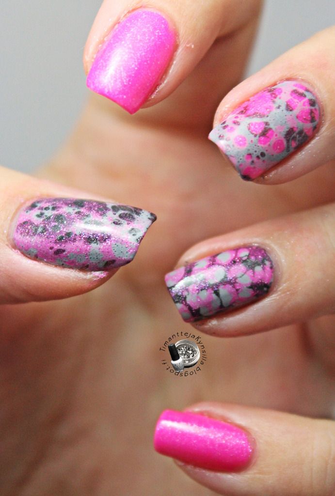 Nimettömässä on kaksi ohutta kerrosta Rockyä, jonka päälle tein wanderlustilla ja Matte Rockilla waterspotted kuviointi.